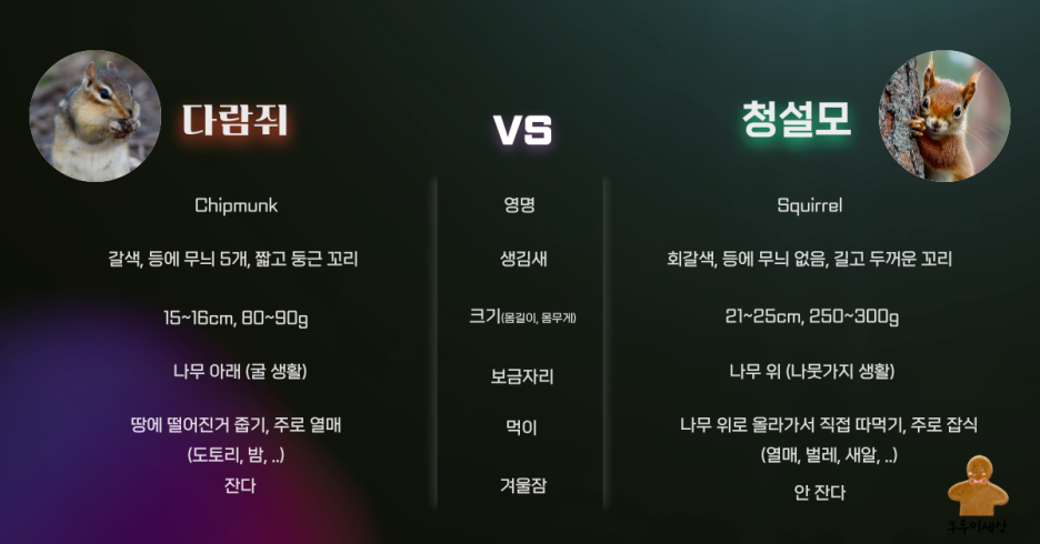 다람쥐는 영어로 'Chipmunk', 청설모는 'Squirrel'로 표현한다.